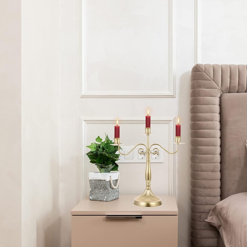 【Exquisite Workmanship】Charming tall candle holder for taper candles, gold finish, beautiful pillar column, delicately designed curved scroll-branch and classic pedestal. The 3 candelabra candle holder will surely invoke a great into your decor.