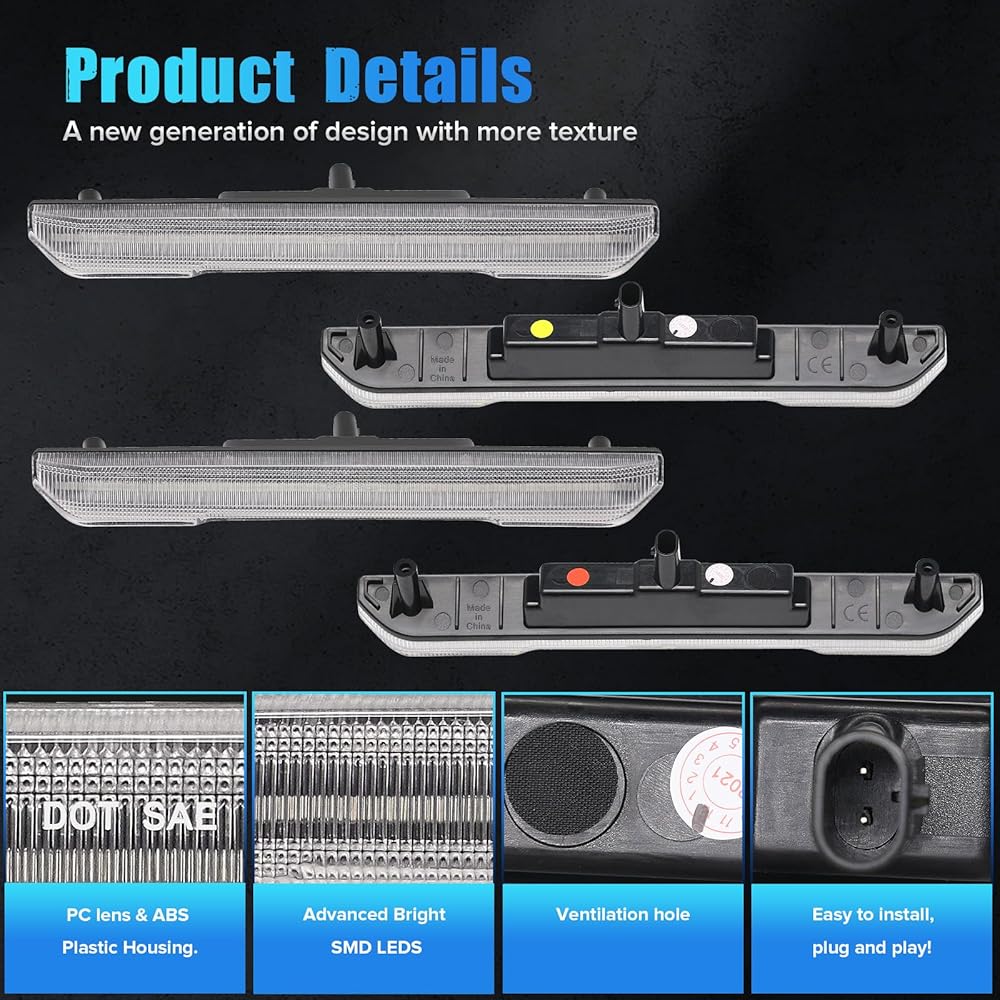 Package:4Pcs LED Bumper Side Marker Light. The original factory provides after-sales service, please contact us if you have any questions