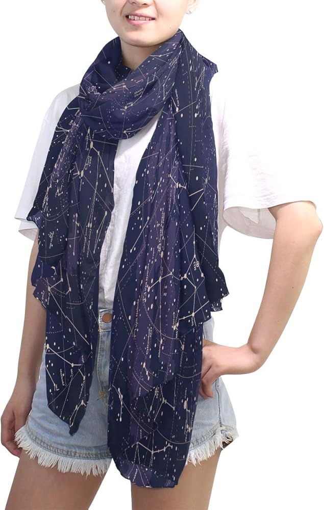 Galaxy Shawl Wrap Womens Elegant 12 Constellation Universe Stars Large Chiffon Scarf Lightweight for Dresses Mothers Day