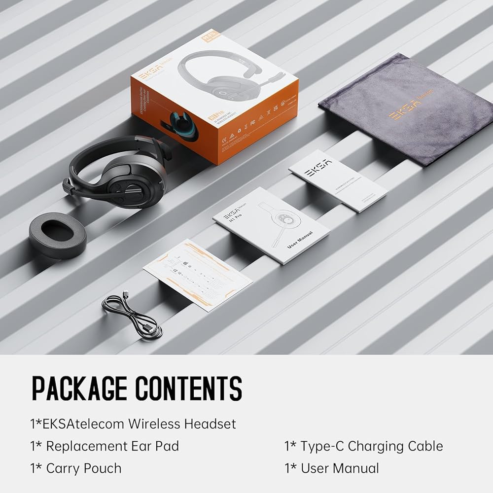 【Extremely Comfortable Headset】This bluetooth headset with microphone is built for your comfort. It features an Over-Ear size soft earcups that is removable and very easy to clean. You can wear it all day, and use this bluetooth headset for truck drivers no matter the head size. You can also adjust the headband to help you reduce the pressure on your head. This EKSA H1 trucker headset can pair with 2 devices simultaneously, ideal for switching between listening to music and clear calls.