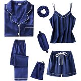 【4Pcs Pajama Set】--- Women Satin 4 pcs pjs sets include camisole sleepwear top + button-down short sleeve sleepshirt + a pair of shorts + a pair of long pants. Before it gets too cold to go without extra layers, our this 4pcs pajamas set you won't feel embarrassed to wear out and about. Multiple matching ways to meet your daily wearing needs all year.