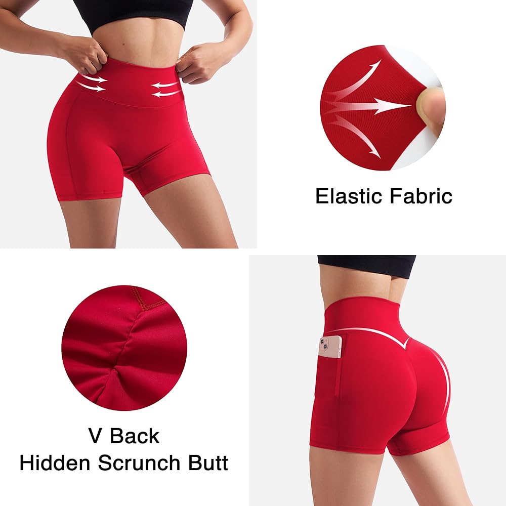 V-Seam Back Hidden Scrunch Butt Shorts with Pockets: With an upgraded hidden scrunch design,the 3-seam V back of athletic sets subtly lift and enhance your curves, creating a flattering silhouette. These high waisted biker shorts with pockets provide good tummy control and coverage to prevent rolling down. Two side pockets can hold your telephone, wallets and keys so that you can focus on your exercise instead of your essentials.