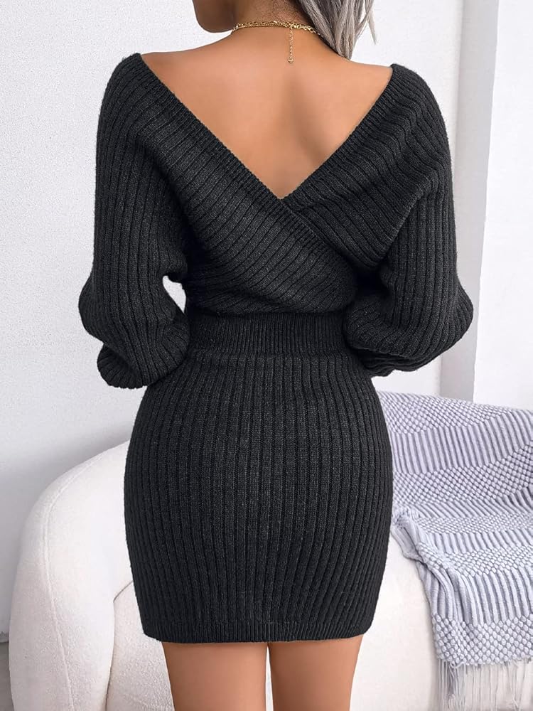 Feature: Sweater dress for women sexy, deep V-neck, v back backless, batwing long sleeve, front wrap, pullover style, mini short length, solid color, backless, slim bodycon shows you sexy curves, fall wedding guest dress, cocktail dresses.