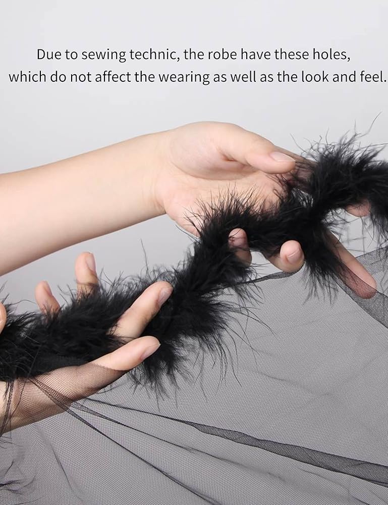 NOTE :Due to transportation, there will be more shed feather in the packaging bag, please pick up and shake it slightly. There will be less fall off in the future. Due to sewing technic, the robe have these holes, which do not affect the wearing as well as the look and feel, super pretty.If you mind, please be careful to buy