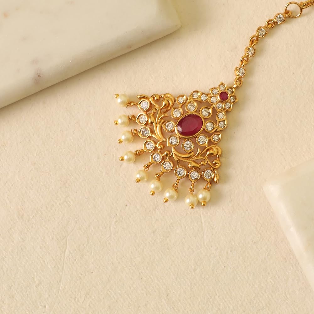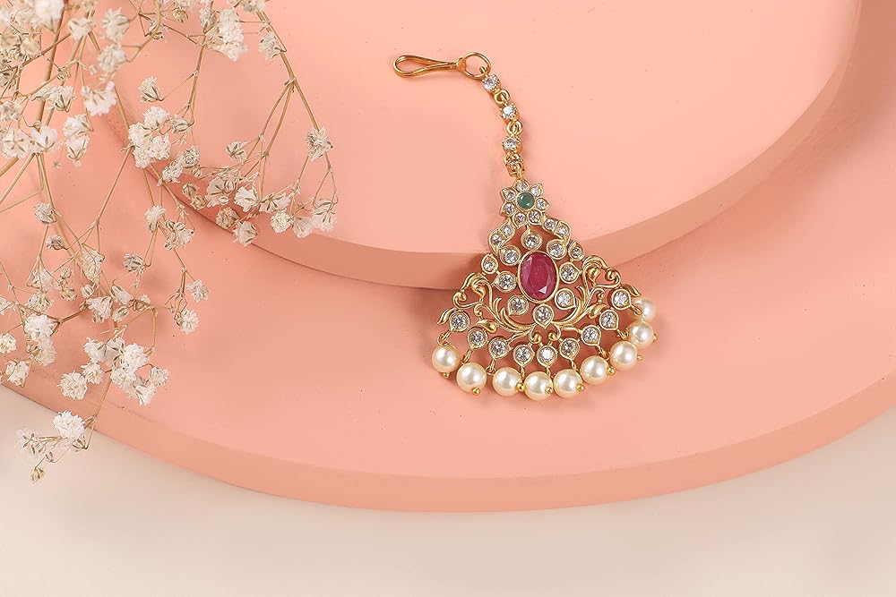 FEATURE: This traditional jewellery includes 1 maang tikka, length (9.5cm) and weight (12gm). This maang tika comes with Fishhook closure.