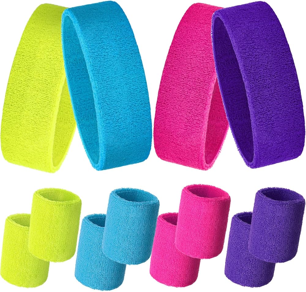 Colorful sweatband set: package includes 4 pieces sport headbands, 8 pieces wristbands, very popular sweatbands set, very attractive for a good look