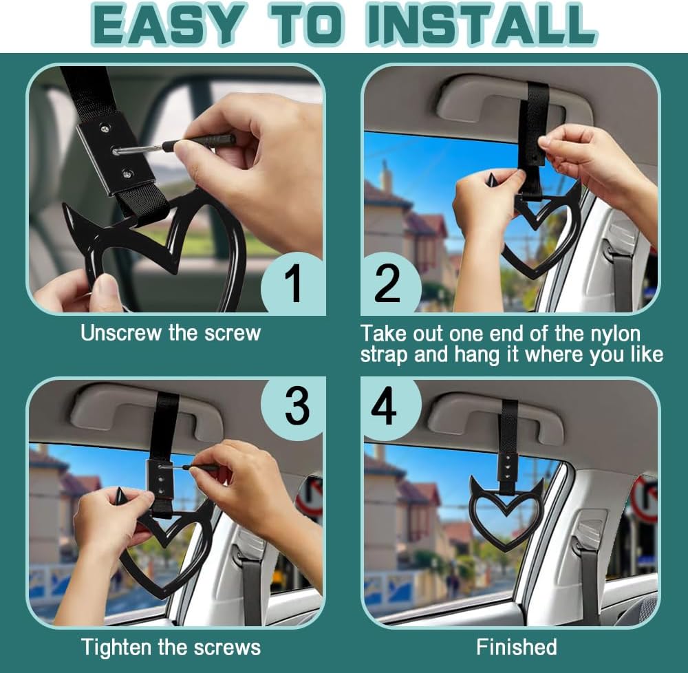 [Non-destructive installation] : This car handle strap is easy to install, please prepare a screwdriver to assist you to install, first you need to remove the three screws on the wrist strap, and then through the position you need to install and adjust, and finally screw back to ensure firm, you can complete the installation, very convenient and fast.