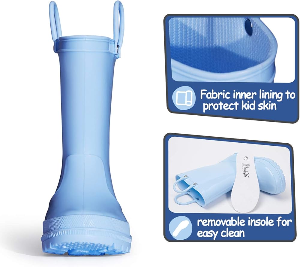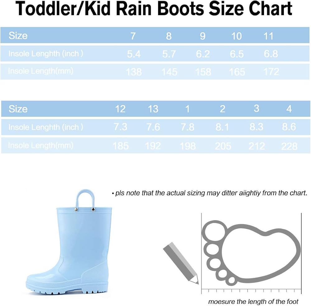 Suitable for Kids:Rain boots'outsole with deep grooves provide strong traction and channel water away to make the treads dry, feels like standing in a firm and not wet ground.