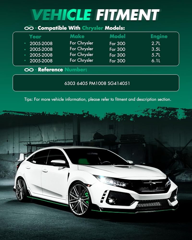 COMPATIABLE VEHICLES - 6303 6405 PM1008 SG414051 replacement lift support strut gas spring shocks Fit For Chrysler 300 2.7L 2005 2006 2007 2008,For Chrysler 300 3.5L 2005 2006 2007 2008,For Chrysler 300 5.7L 2005 2006 2007 2008,For Chrysler 300 6.1L 2005 2006 2007 2008 Hood Trunk