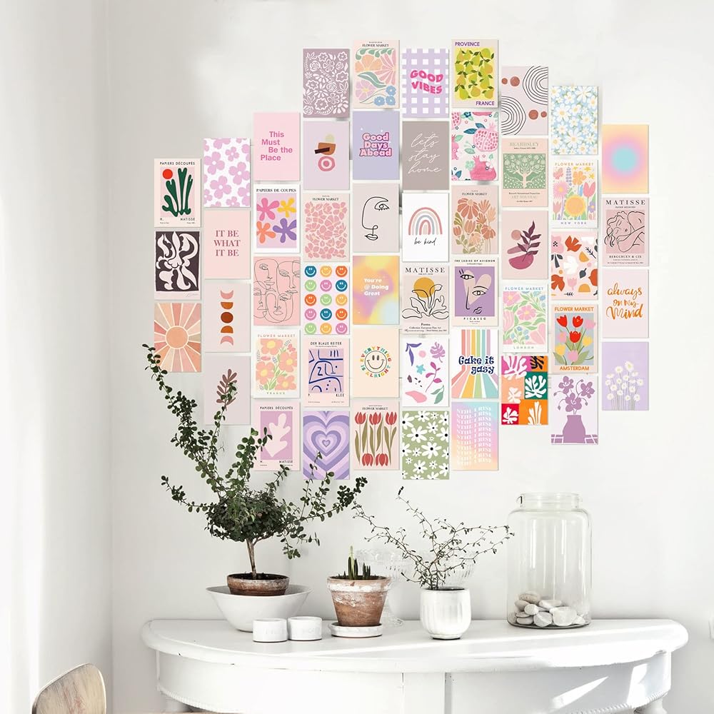 This wall collage has multiple ways to refresh your home decorations! Stick them on the wall and DIY your own photo collage, frame your favorite aesthetic wall pictures and display them on your getting ready space.