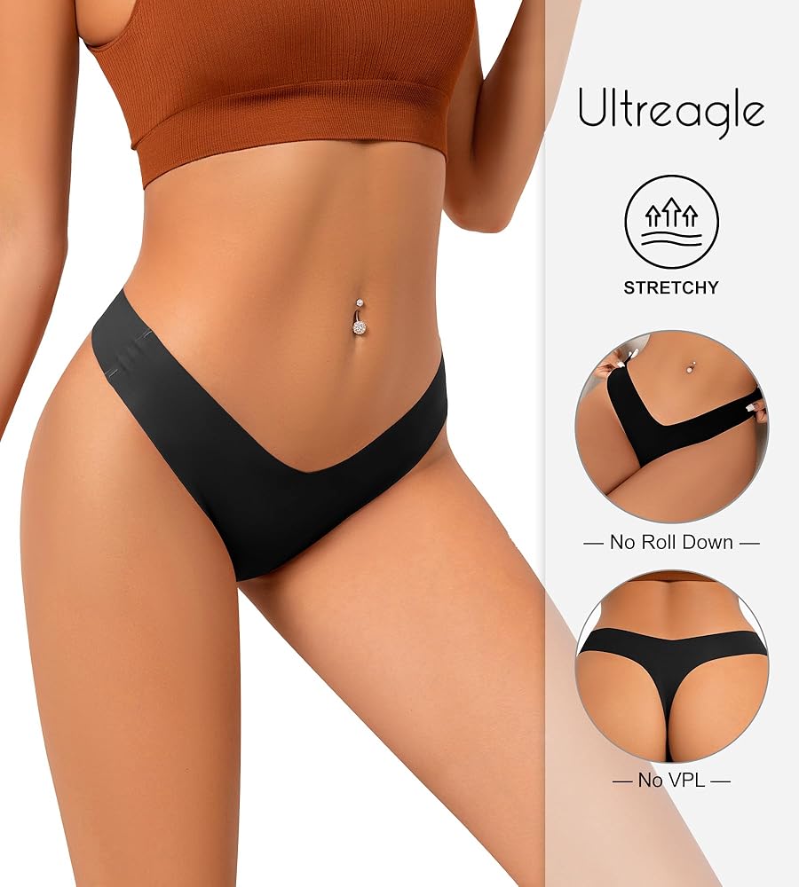 [ Seamless Thongs Styles ] - High-quality soft, elastic, healthy material, does not roll or slip, does not compress, but is very comfortable. Suitable for any hip, you won't dig holes or pull. It is not easy to show traces with bottom pants or yoga pants.Ultreagle seamless underwear for women is your best choice.