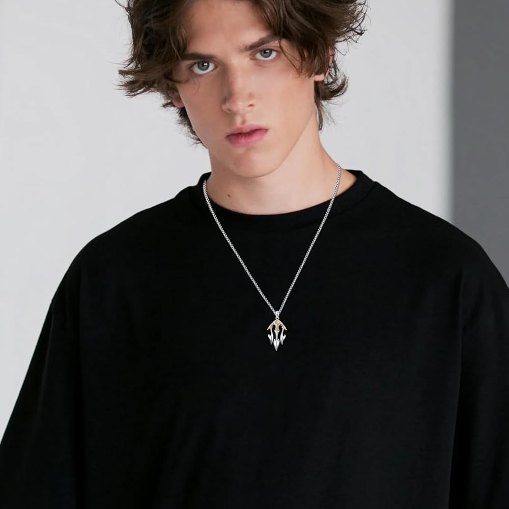 🔱More Details🔱The size of the trident necklace is: 35*19mm(1.37*0.75in). The chain length is moderate, not too long and not too short, and wearing comfort is guaranteed. Suitable for all age and gender.