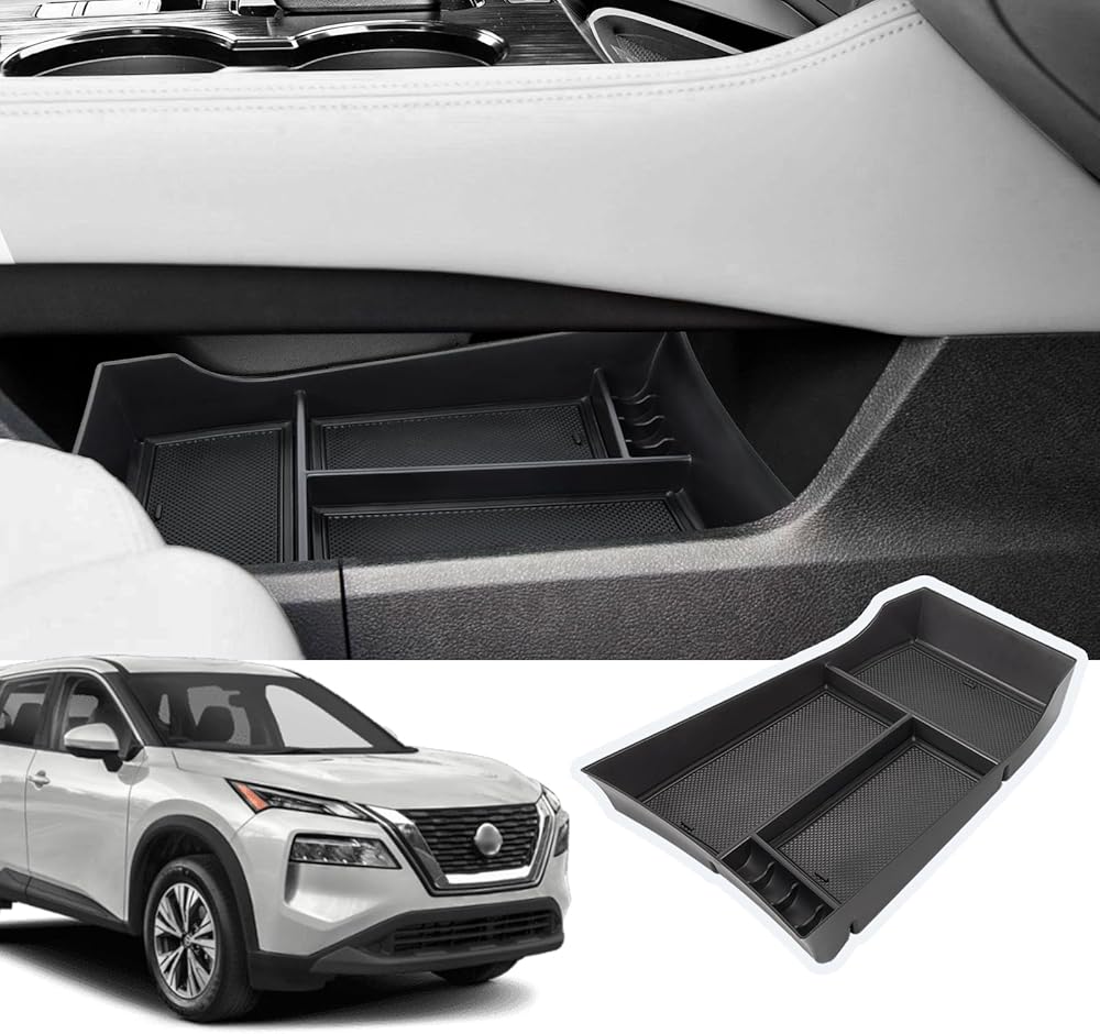 Compatible Vehicles: The center console organizer compatible with 2021-2025 Nissan Rogue S/SV/Rock Creek; Please check the model carefully before buying (only fit 8 inch screens)