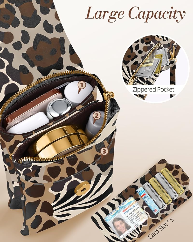 Large Capacity: Three distinct compartments and one zippered pocket of this crossbody purse provide enough space for all sizes of phones, as well as other essentials, keeping your items organized and easily accessible