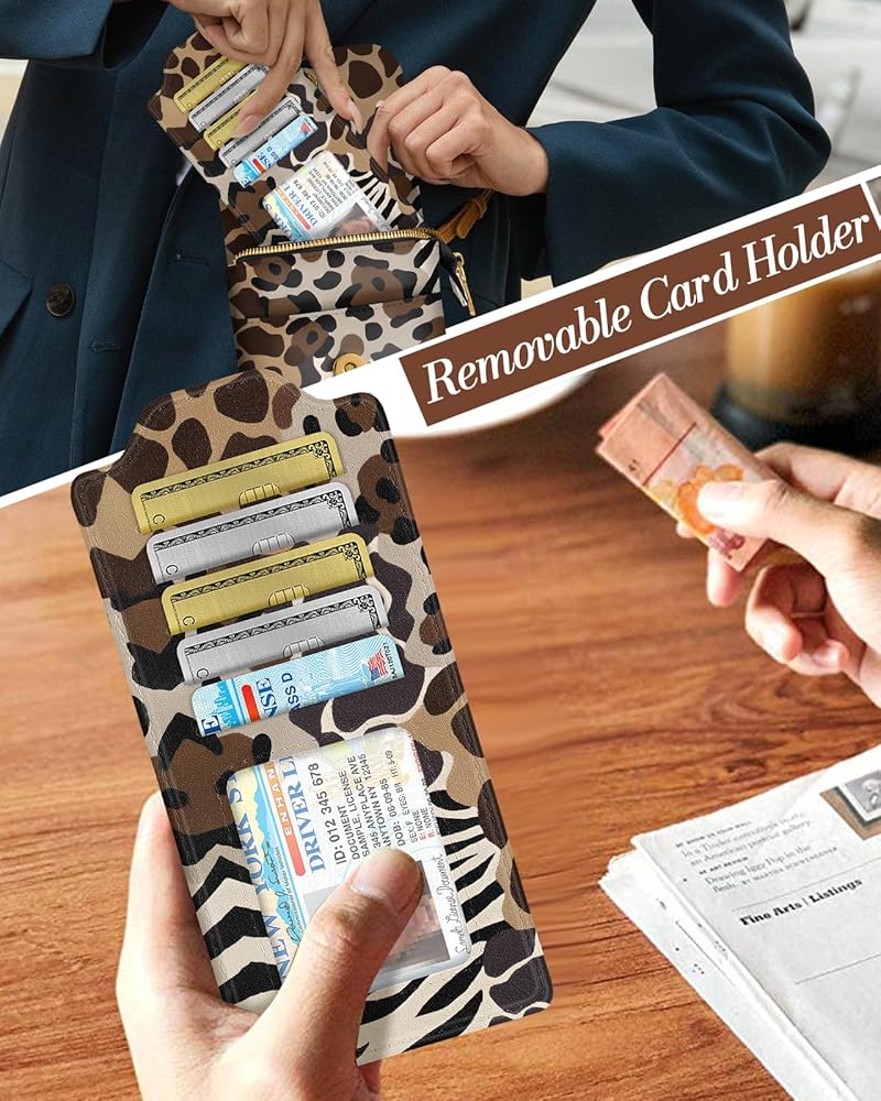Detachable Card Holder: There is a detachable cardholder in this cell phone bag. The convenient card holder can hold at least 5 cards, making it ideal for carrying credit cards, ID cards, and more
