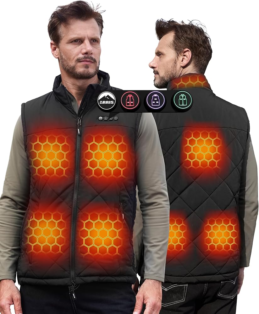 ✅ 𝗬𝗢𝗨𝗥 𝗨𝗟𝗧𝗜𝗠𝗔𝗧𝗘 𝗚𝗜𝗙𝗧 𝗖𝗛𝗢𝗜𝗖𝗘 - The lightweight and fashionable sleeveless design allows for unrestricted movement, making it perfect for outdoor activities like running, camping, hiking,hunting, golf. By highlighting the size adjustability and independent heat areas as key features, ARRIS battery powered unisex heated vest must be your ultimate gift choice for family during special occasions like Thanksgiving, birthdays, and Christmas.