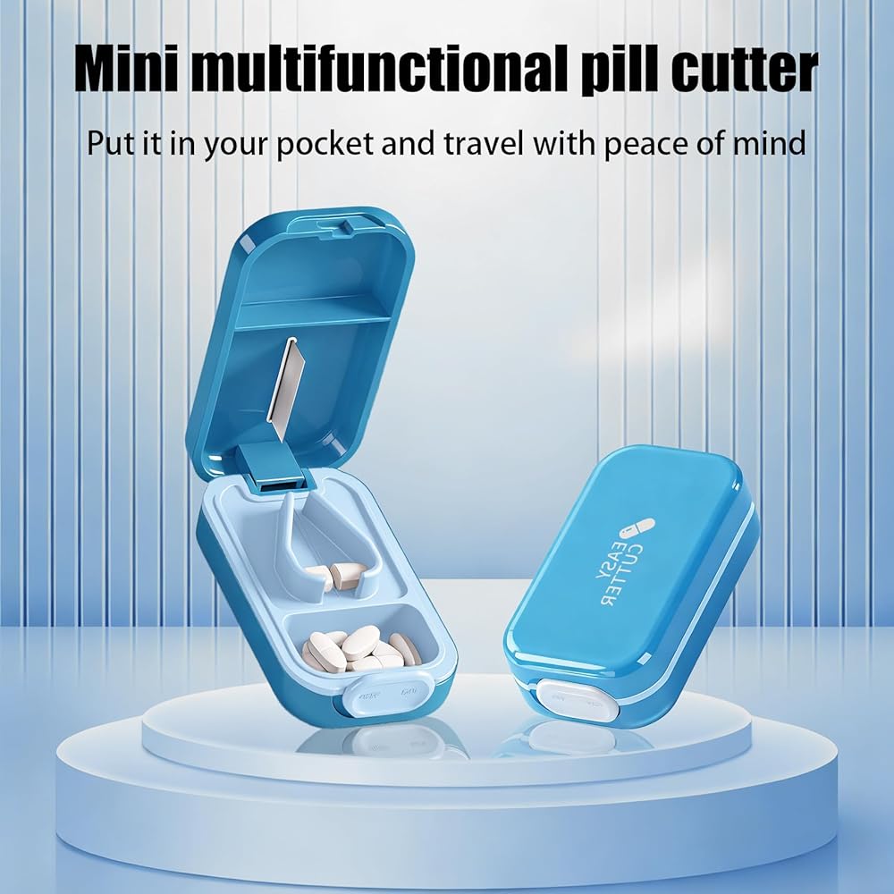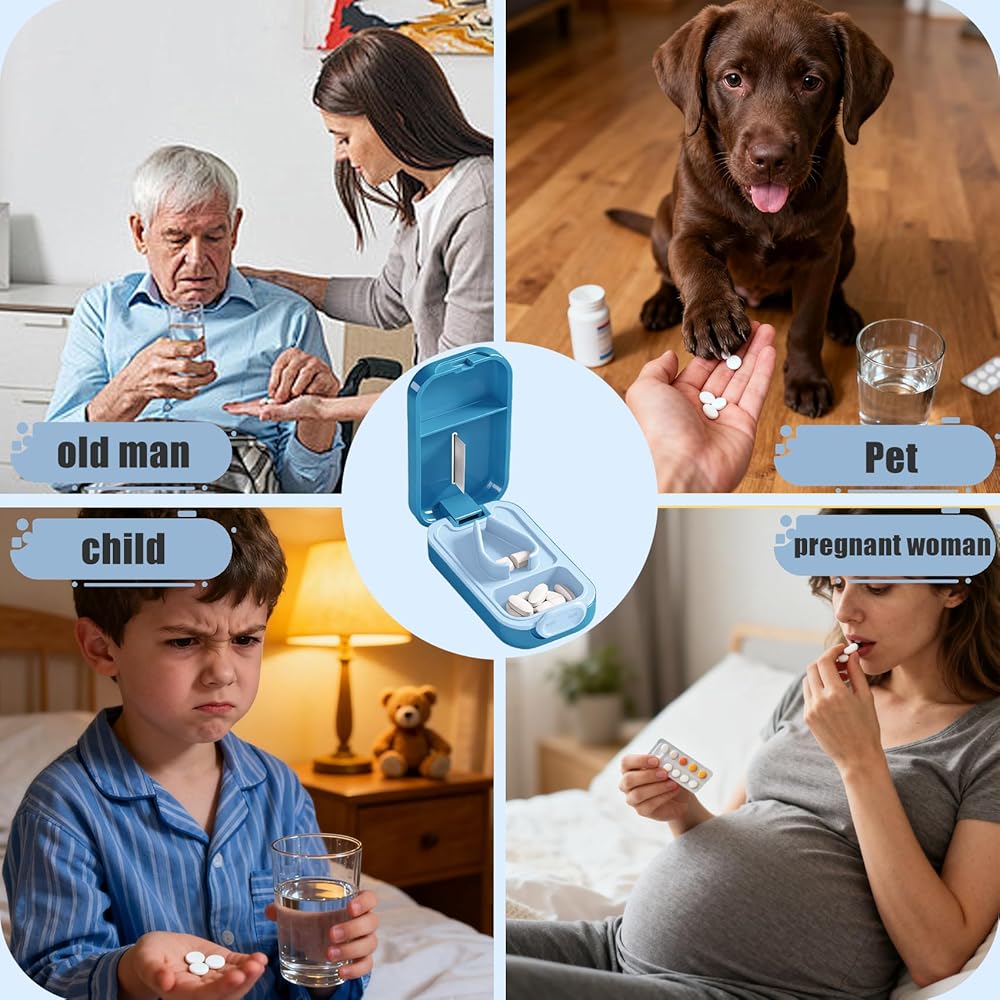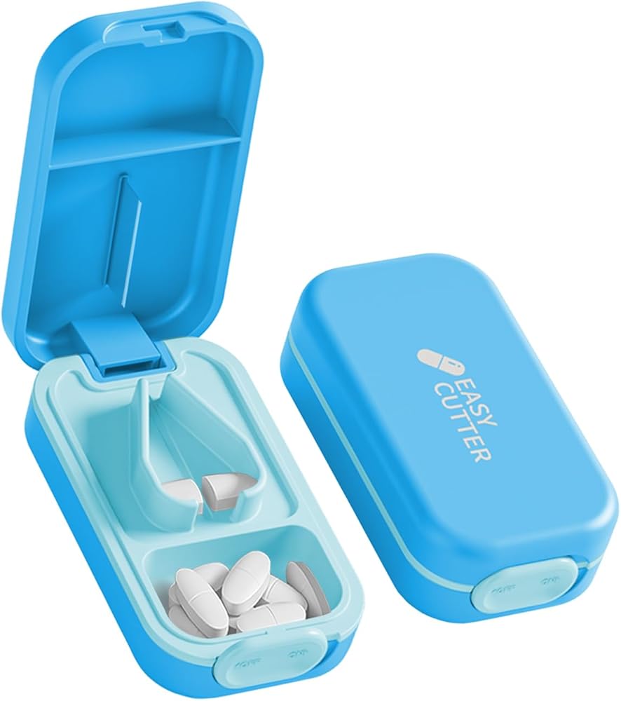 Hafjgjgj Pill Cutter -Tablet Splitter for Healthy Living These pill cutters have made splitting doses safer and easier. Features like silicone non-slip liners, storage compartments, and a safety lock make cutting pills safe. Features: + Simple Cutting Action - Cuts and Splits medication efficiently with only light pressure applied by you. + Professional V-Centering Device: For any pill up to 0.8 inches, whether small or large pills, this cutter makes it easy to cut pills or tablets to 1/2 or 1/4 size. + Safety Lock: There is a slider button that allows for a locking lid feature with a simple slide, which prevents pills from spilling out, especially when around kids, pets, or in your purse when traveling. + Secure Storage Area: The splitter has an area for storing split pills and non-split pills that can hold 4-10 pills. + Easy to Use: The silicone liner better prevents accidental tablet movement, while the fully removable insert makes cleaning easy. + Portable design: Compact size, easily fits into your handbag or pocket for easy storage and travel. + Available in multiple colors, ideal for daily use, traveling, office, and business. Package Information:Box Material:Steel and plastic,Silicone Special Feature:Easy Open, Safety Lock