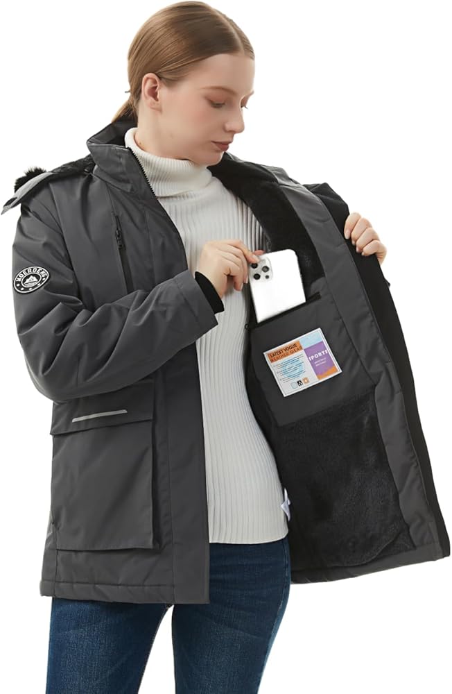 Waterproof: This Women's winter coat is crafted from a waterproof and breathable fabric. Additionally, all the zippers are designed to be waterproof, ensuring that rainwater cannot penetrate the ski jacket. Moreover, the waterproof fabric not only keeps you dry but also effectively eliminates sweat.