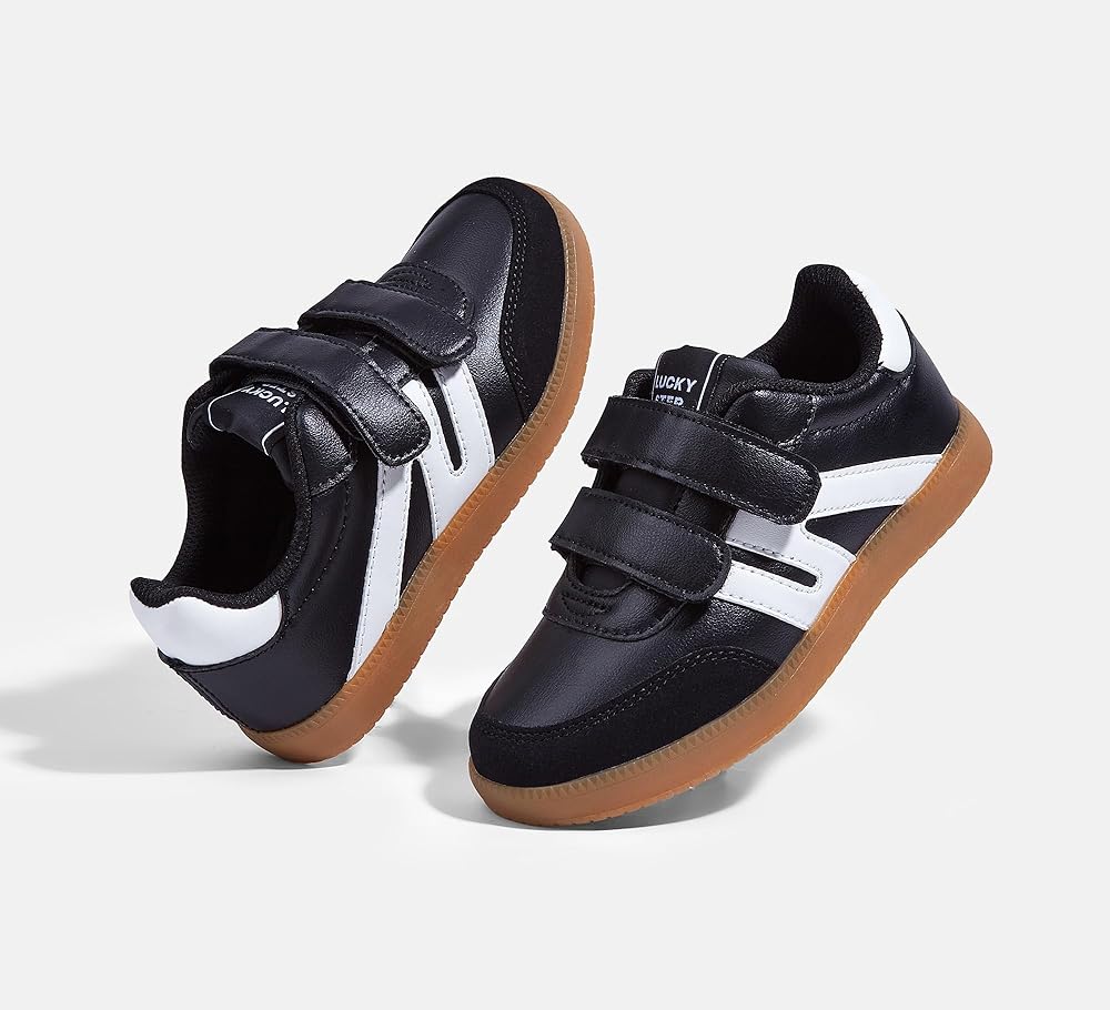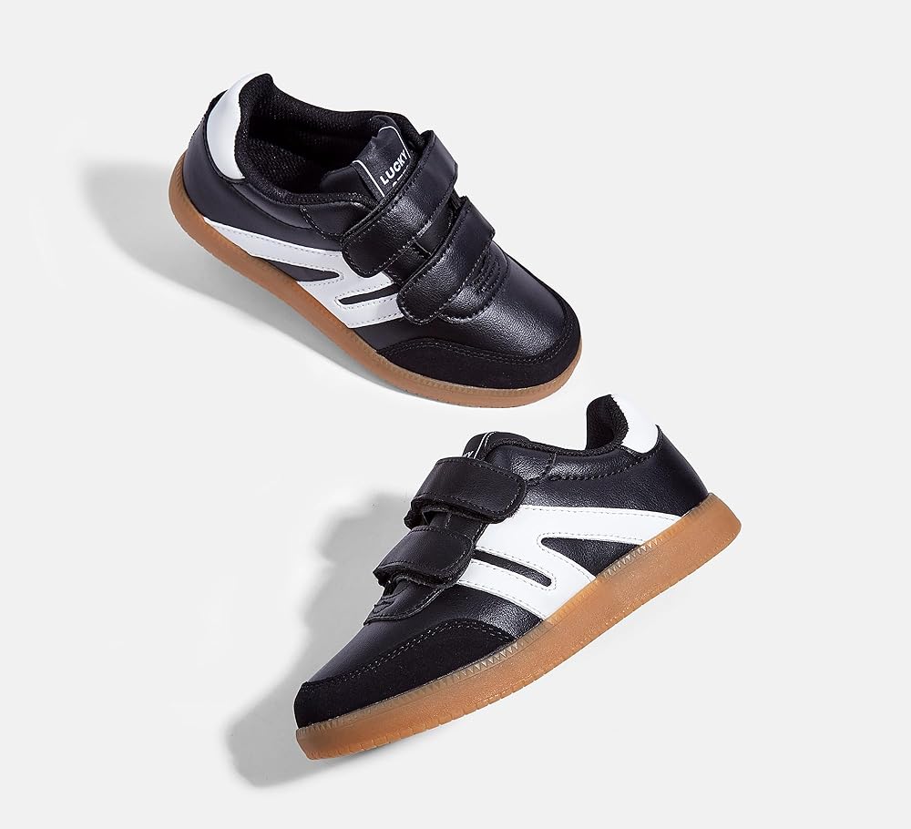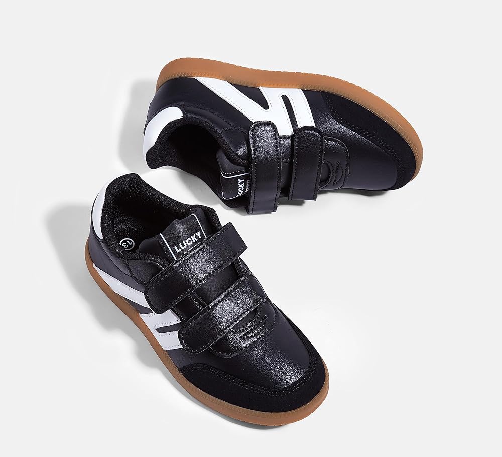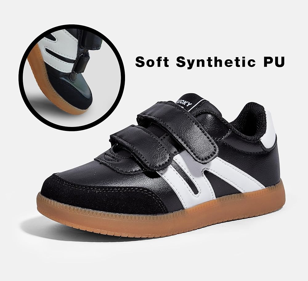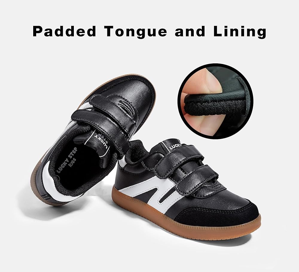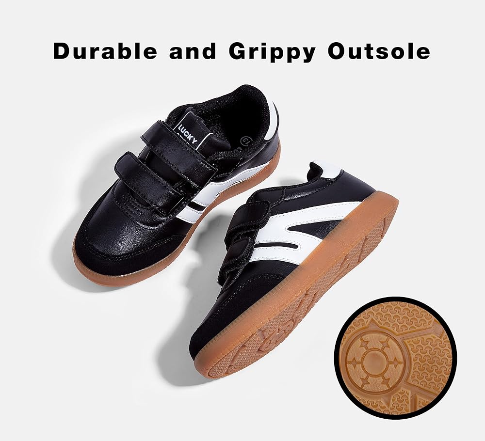 LUCKY STEP Kids Classic Retro Gum Sole Fashion Sneakers School Tennis Skate Shoes Girls Boys Hook and Loop Walking Casual Toddler Footwear Anti Slip Trainers