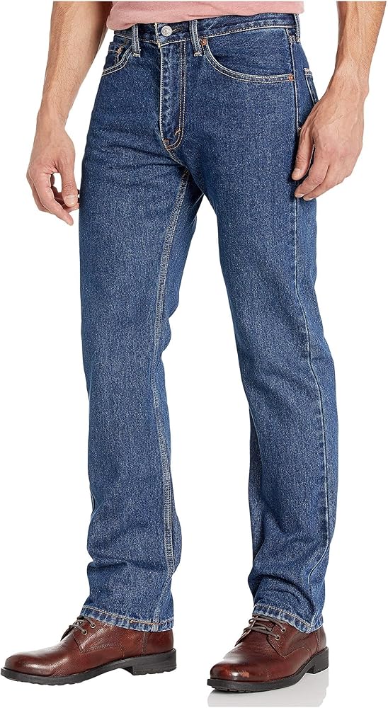 The classic Levi's Mens 505 Regular look that's always in style. 505 jeans fit comfortably straight through the seat, thigh and leg. Straight-cut waistband sits at the waist. Sits evenly on both the front and back. Classic, five-pocket design. Branding-stamped rivet and shank button-detailing. "Levi's" or trademark-branded red tab at back pocket. Leather brand patch at back waist. Signature arcuate stitch at back pockets. Belt-loop waistband. Zip fly and button closure. 100% cotton except on noted washes. Nail Loop Knot, Birdman, Clif, Goldentop, Hawker, Stonewash Stretch: 99% cotton, 1% elastane. Afrobeat Stretch, Caraway Slub Twill 1, Cash, Moss Black Overdye, Navarro: 98% cotton, 2% elastane. Flying Bird: 99% cotton, 1% elastane. Kansas: 94% cotton, 5% polyester, 1% elastane. Roth: 88% cotton, 11% polyester, 1% elastane. Machine wash cold, tumble dry low.