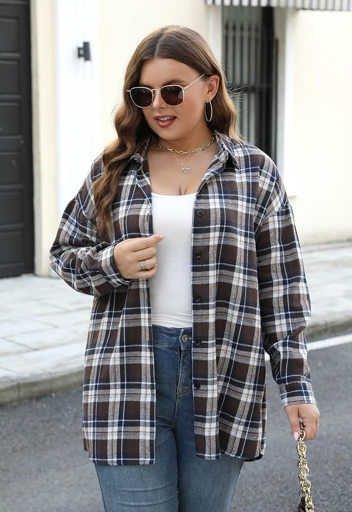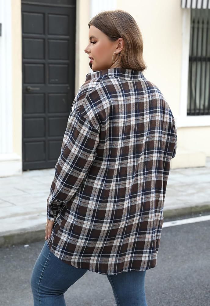 Features: Our plus size shirt features a classic plaid pattern that effortlessly elevates your casual look. The long sleeves and buttoned cuffs offer a unique touch, allowing you to roll up your sleeves with ease while maintaining a polished look. Designed with a stylish turn-down collar, this plus size shirt adds an element of sophistication to your everyday wear.