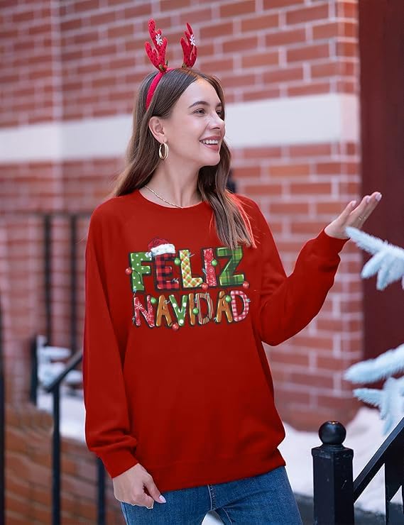 Soft Material: Feliz Navidad Christmas graphic sweatshirt is made of soft and comfortable material cotton blend, friendly to your skin. Loose fit women sweatshirt,ideal for fall and winter wear