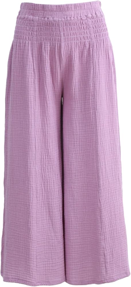 The women's lounge wide-leg pants are made of 100% light-weight cotton gauze fabric, it is soft and breathable and comfortable to wear