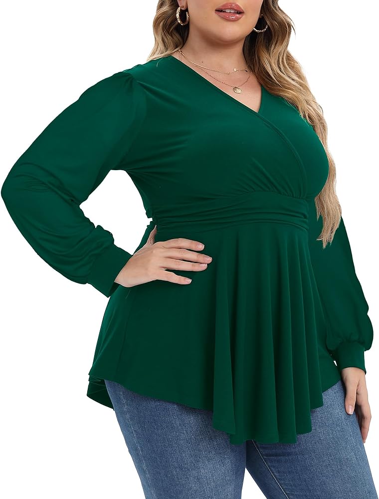 Faux-wrap V Neck Detail,easy to Adjust the Cleavage - Faux wrap v neck design does show a good deal of cleavage,you will look sexy and charming; Empire waist can groom your waist and curves, Ruffle hem tops flows nicely to hide belly for women.This top makes you feel sexy, confident, very comfortable and it is extremely flattering on plus size curvy body.