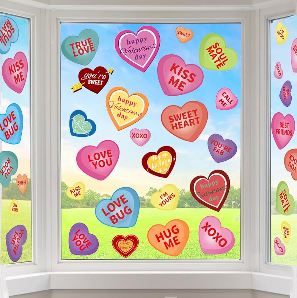 10 Sheets Valentines Day Window Clings, Colorful Heart Shaped Reusable Static Window Stickers for Home, Bathroom, Office Decor