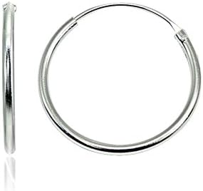 Sterling Silver Small Medium Large Endless Round Thin Lightweight Unisex Continuous Hoop Earrings