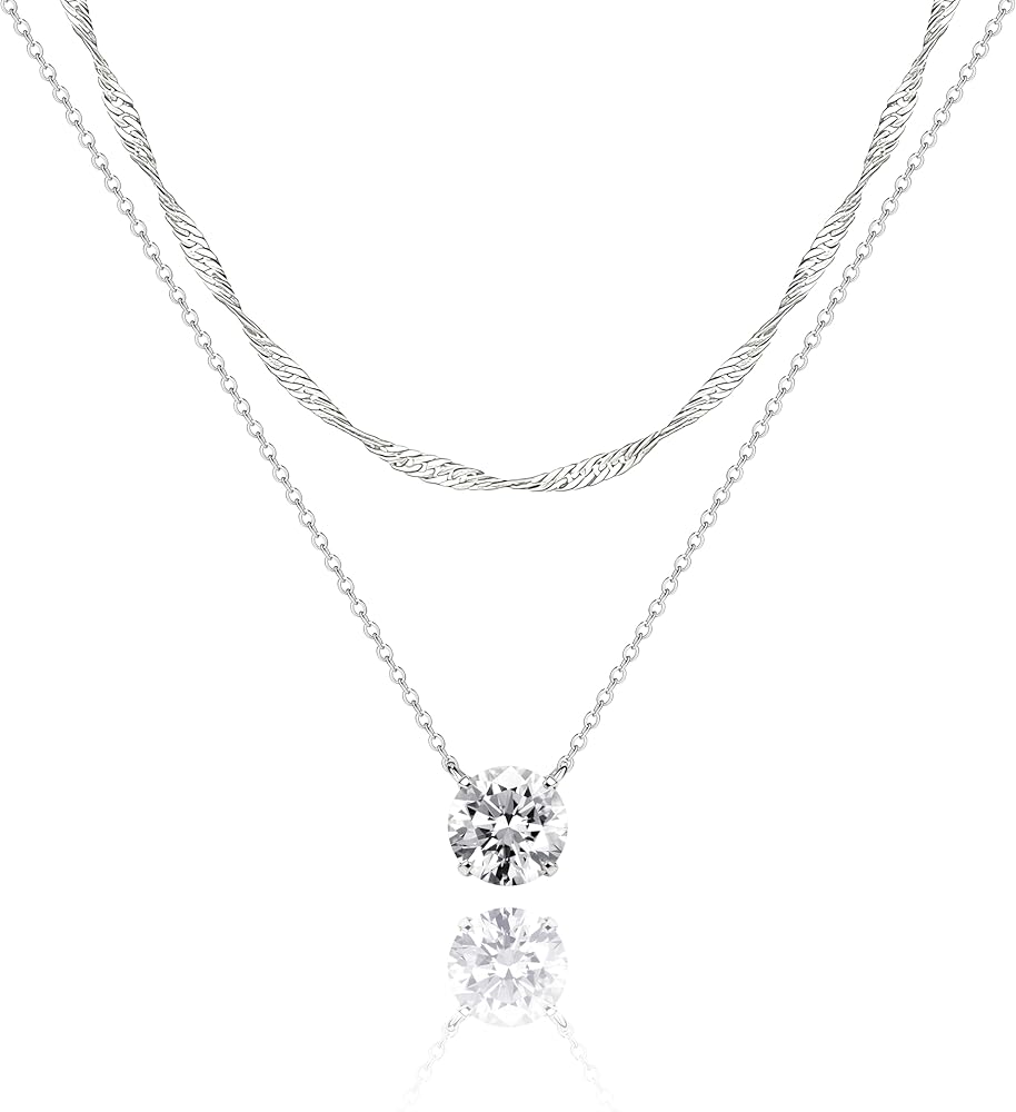 Dainty Silver Necklace Material: Crafted from AAAA+ cubic zirconia and featuring a high quality silver plated chain is non tarnish and waterproof.The nickel-free, lead-free, and hypoallergenic design guarantees a comfortable and safe wearing experience.