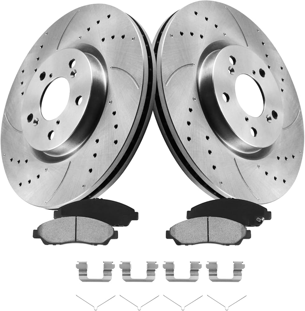 [Precision Engineering & Noise-Free]: Automotive replacement brake kits undergo meticulous processing for exceptional precision, ensuring smoother braking and reduced pad wear. With a static balance of just 114g.mm and minimal flatness tolerance, brake rotors optimize performance while providing durability. Say goodbye to noisy brakes and enjoy a quieter, safer driving experience.
