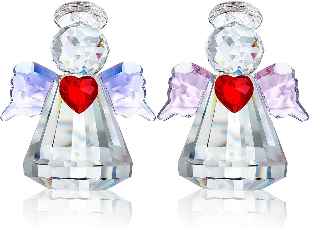 HDCRYSTALGIFTS Set 2 Crystal Guardian Angel Figurines Collectibles,2.5'' Glass Angel Ornaments for Galentines/Valentine’s Day Home Dollhouse Statues Decor Gifts for Women