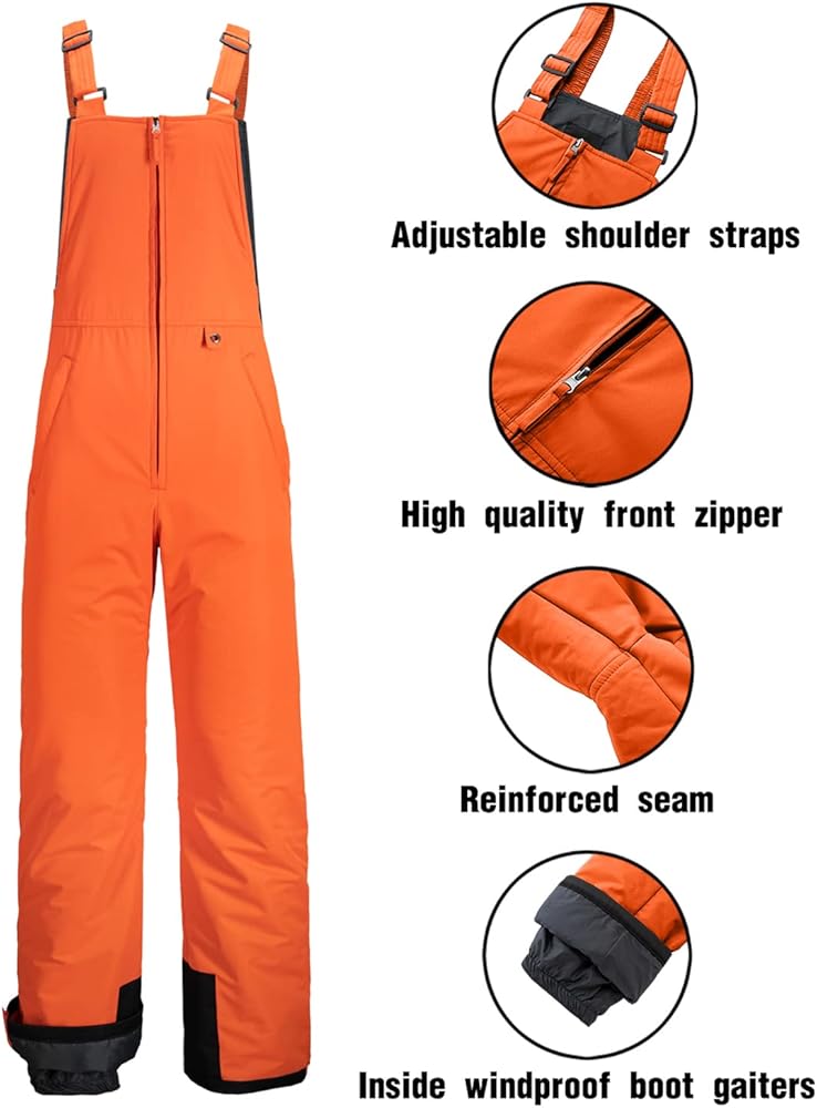 • Comfortable Fit: The snow bib with an adjustable waist and overall straps could offer you a classic look and perfect fit. Side-Pockets with secure zipper to keep small items safe, along with a convenient O-ring for keys, gloves, lift tickets, and your small belongings.