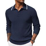 [Premium Fabric] : Men's long sleeve polo shirts is made of soft, stretchy and durable fabric, giving you comfort and flexibility. This waffle knitted polo shirts could bring you a better wearing experience and keep you warm in cold days, making it more comfortable and thermal.