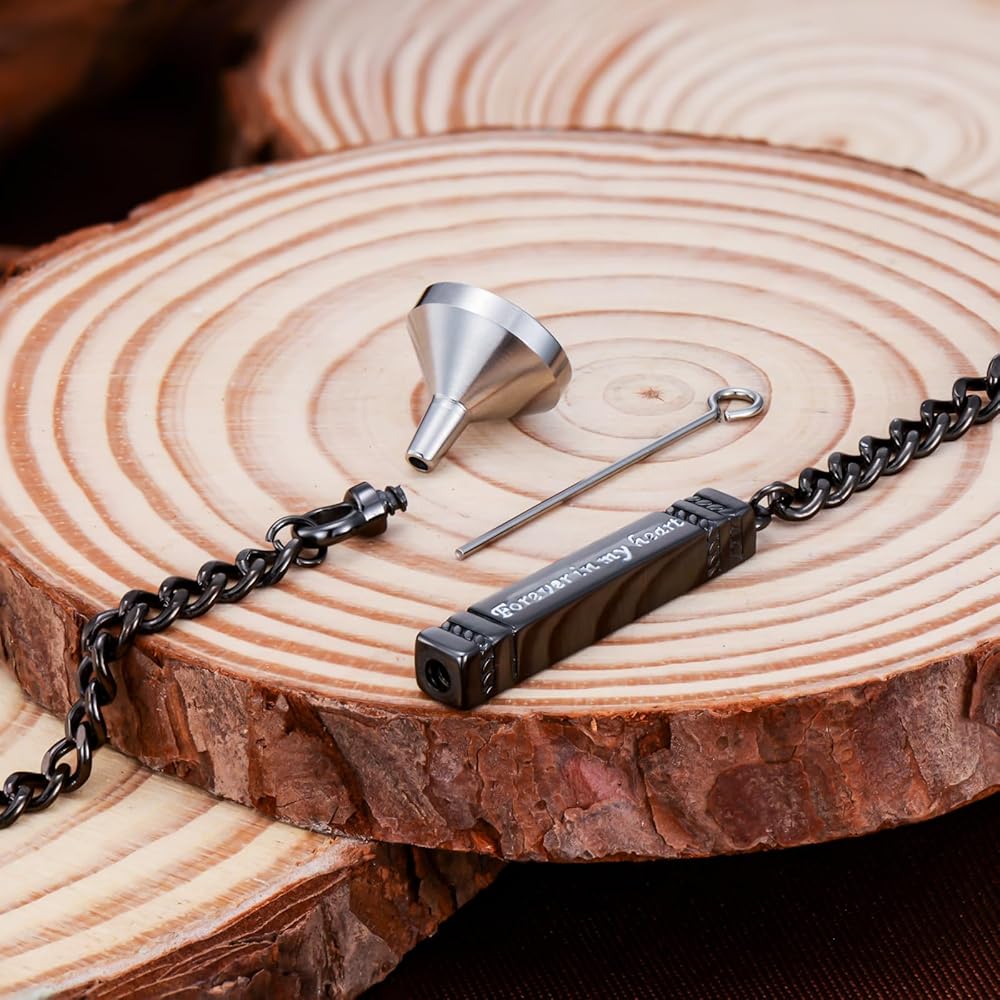 Material: This Urn Bracelet with a swivel on the left comes with a filling funnel, made of hypoallergenic 925 sterling silver material. Hypoallergenic, lead-free, nickel-free, and cadmium-free. You can fill it with a small number of ashes, hair, or other personal items, you can also add essential oils, perfumes, dried flowers, sand, etc.