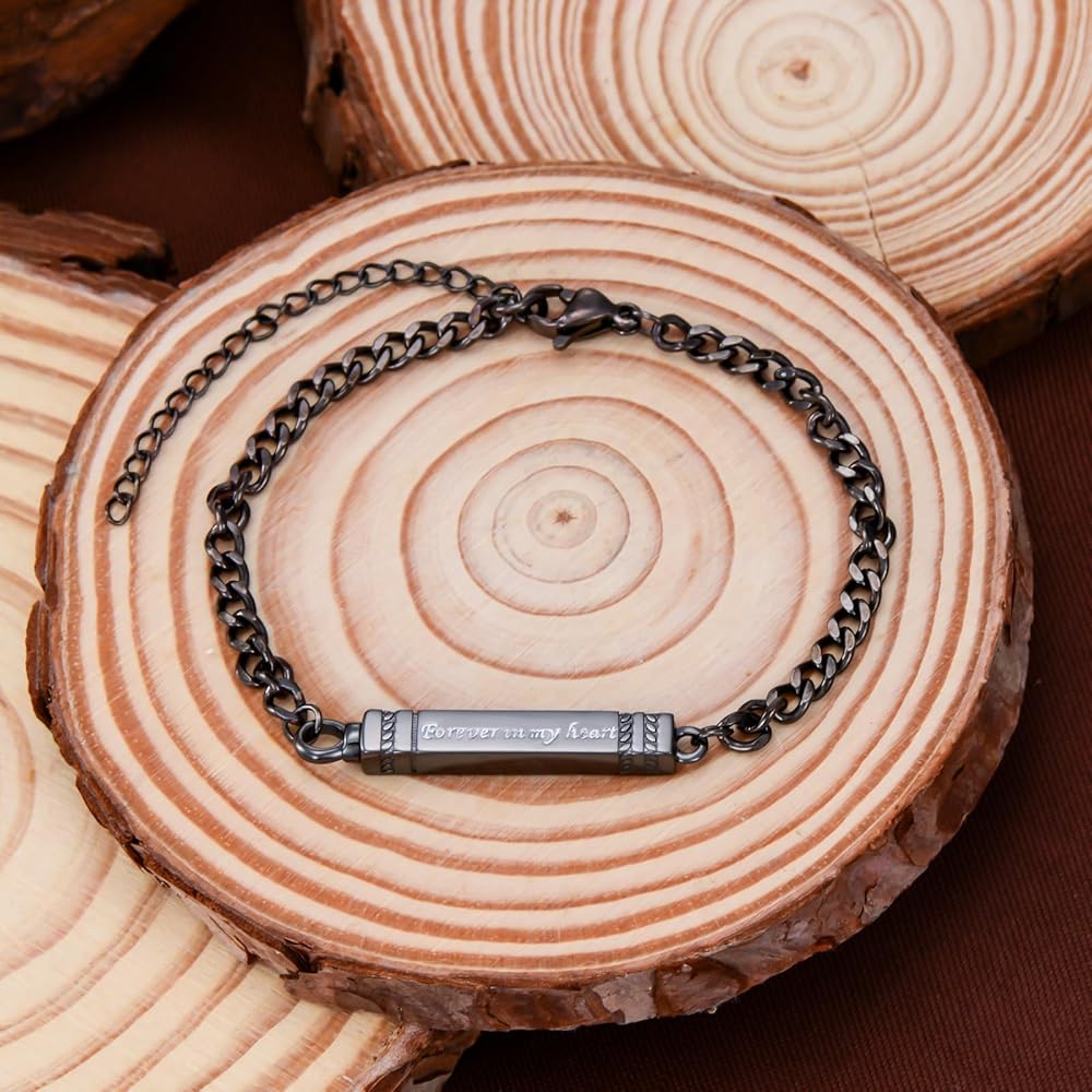 Urn Bracelet for Ashes: Wearing this Bracelet, will leave a good memory for him/her, keeping him/her close to your heart all the time. Never forget grandpa/grandma/mother/father/her//him. This Bracelet can be worn as an ornament and a good way to commemorate your loved ones.