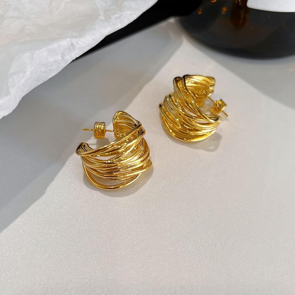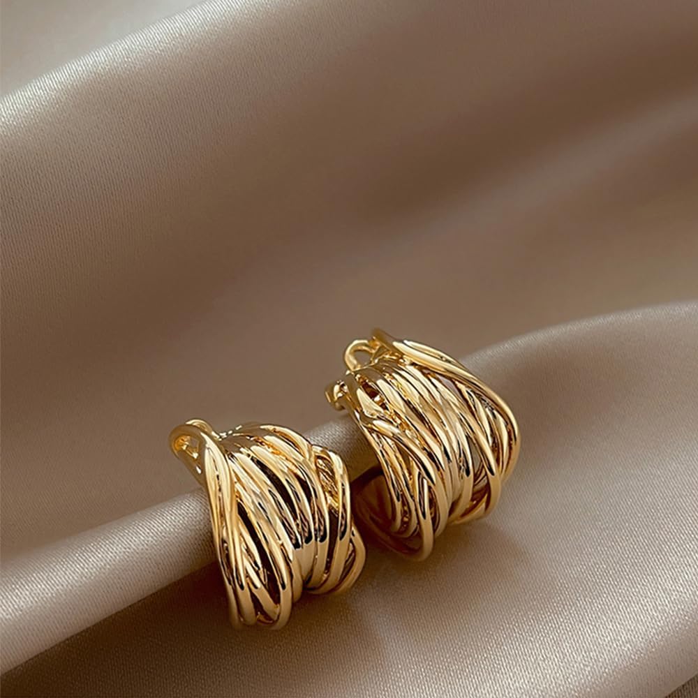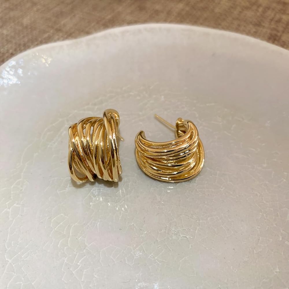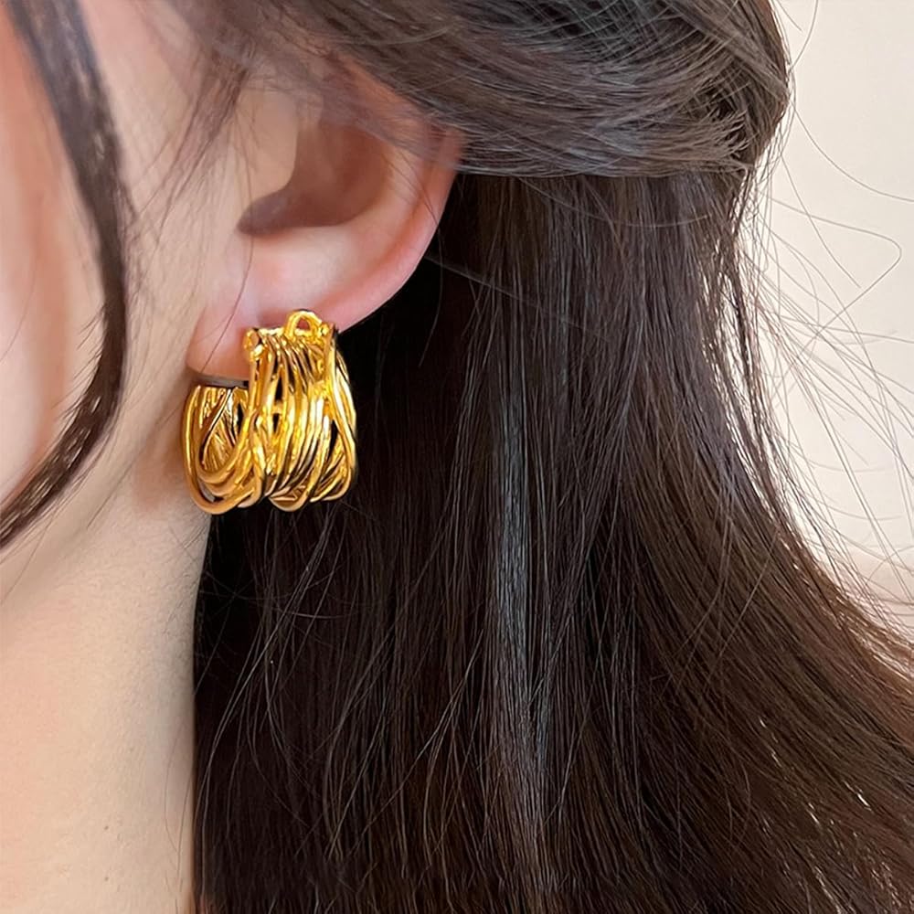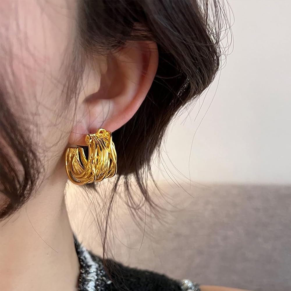 Chunky Open Hoop Earrings For Women,Large Trendy Brass Thick Lightweight Geogrofy Geometric Earrings for Party
