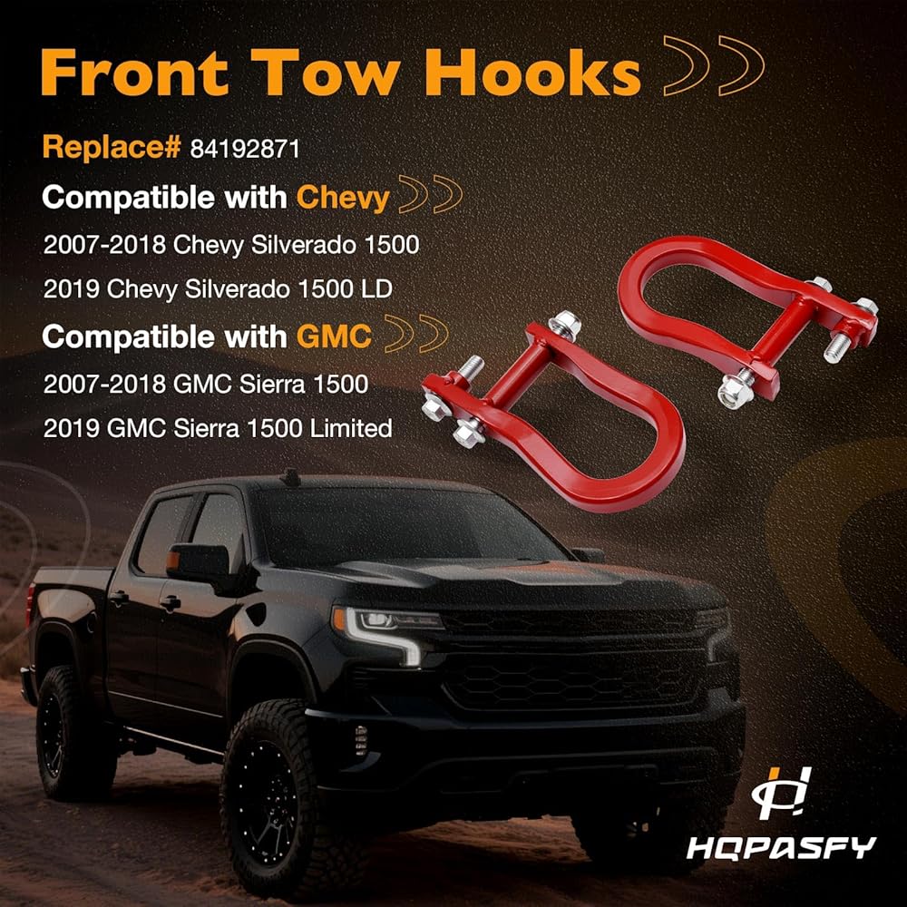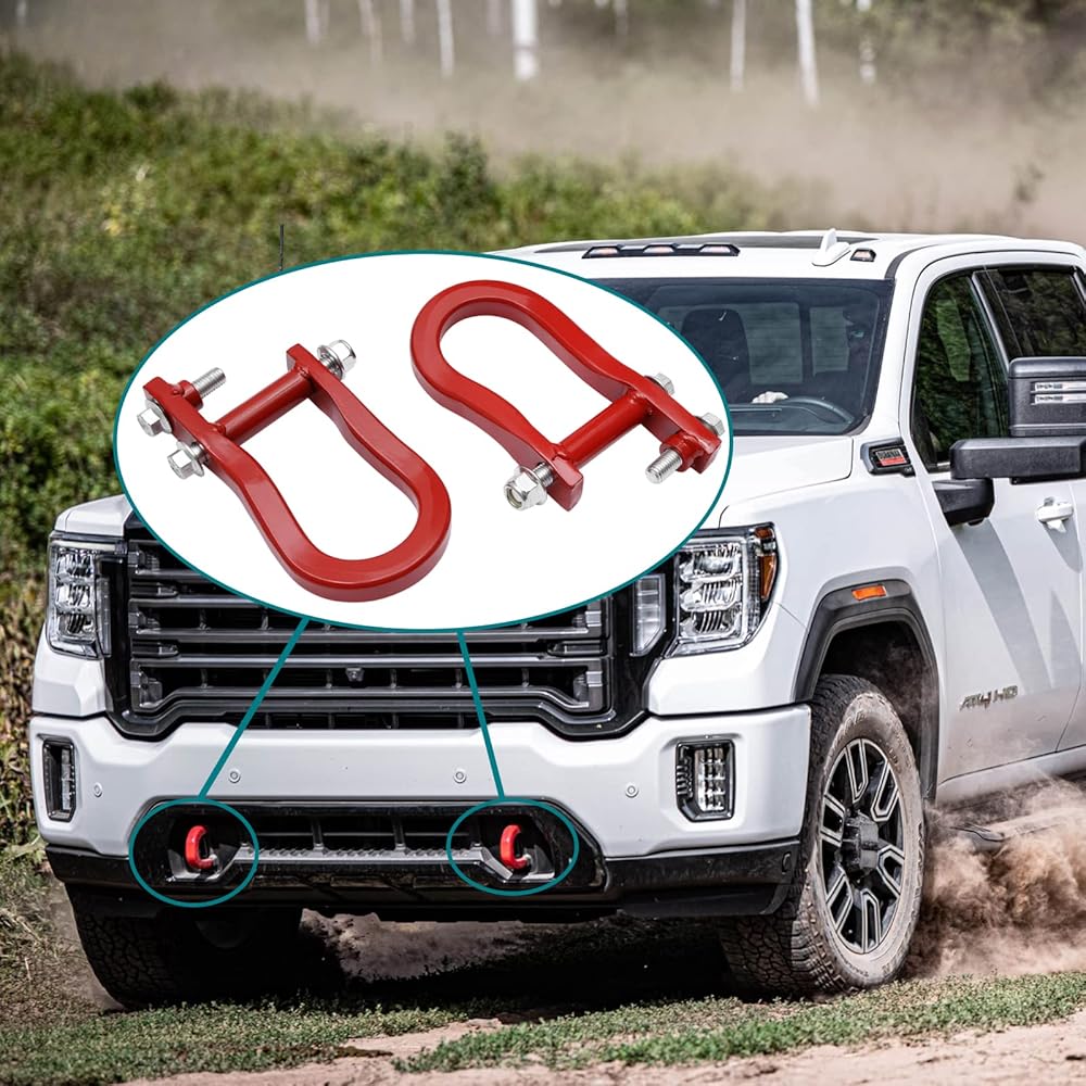 Front Bumper Tow Hook Shackles 2Pcs Red Compatible with 2007-2018 Chevy Silverado 1500, GMC Sierra 1500| 2019 Chevy Silverado 1500 LD, GMC Sierra 1500 Limited Replaces# 84192871