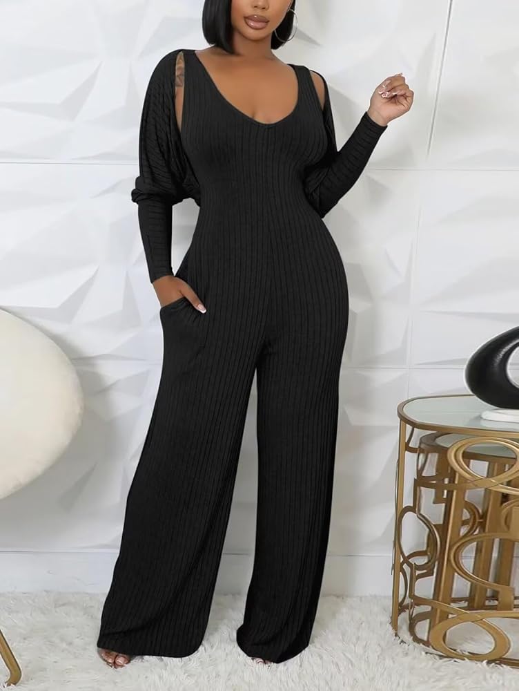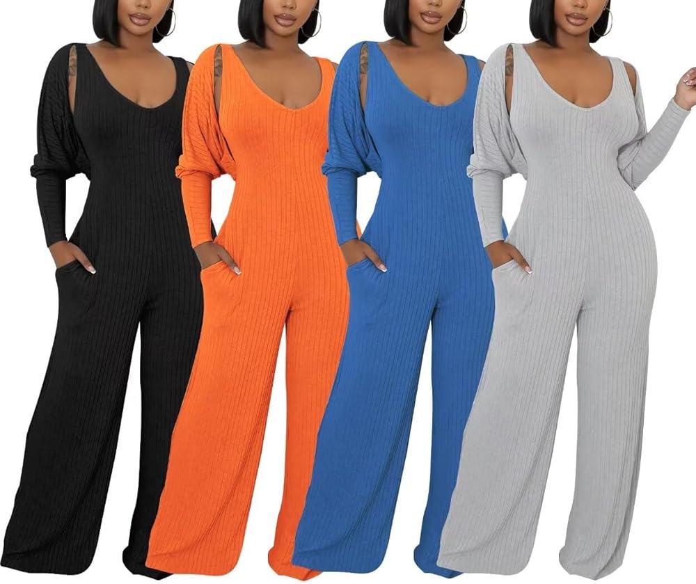 Feature:This sexy two piece sets for women feature with 2 piece crop tops pants set outfit,long sleeve,solid color,ribbed crop cardigan + sleeveless tank wide leg pants jumpsuit romper for women,elegant jumpsuit,Casual long pants rompers for women,2 Piece Pant Set Outfits for women,knit ribbed sweatsuit set,women lounge set