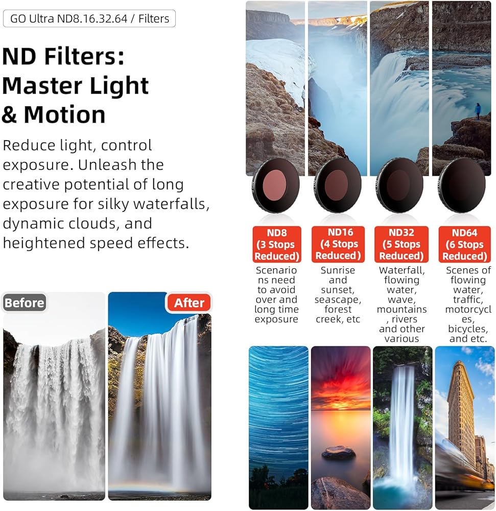 ✅【For GO3/GO2】Rszfnjxry CPL+ND8+ND16+ND32 lens fitler kits,precisely engineered for Insta360 GO 3/GO 2 camera.