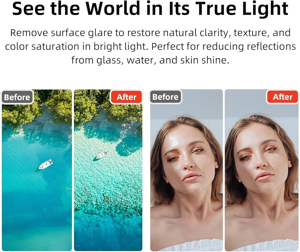 ✅【The Role of CPL】The CPL filter helps to remove unwanted reflections such as scattered light in the air, the reflection of metal and water, allows only parallel light to pass through to increases color saturation, creating deep, rich scenic images.