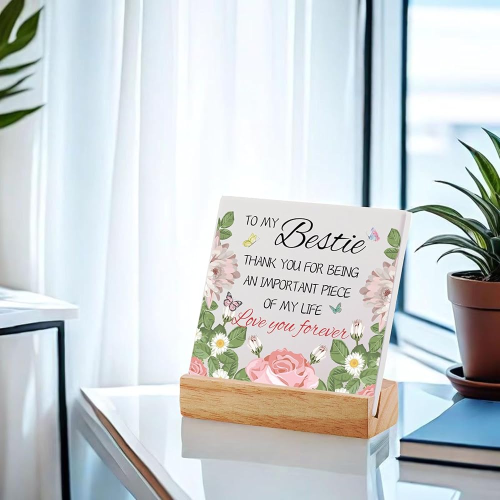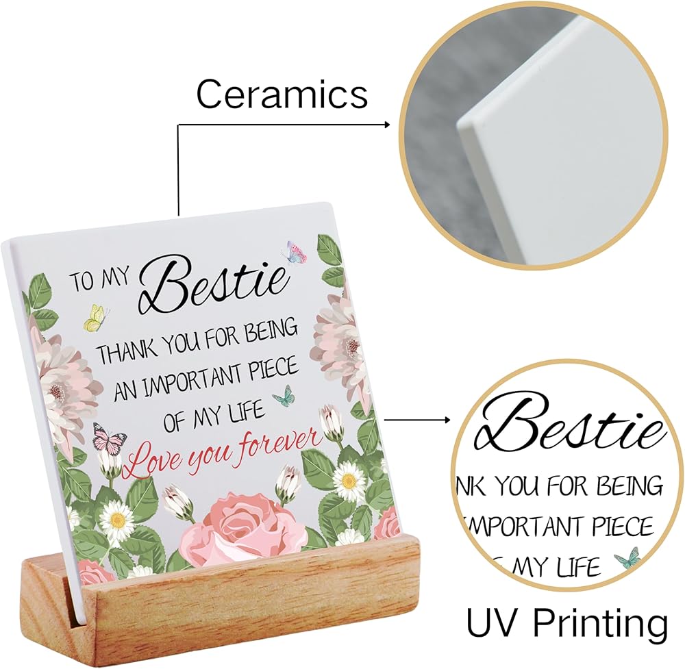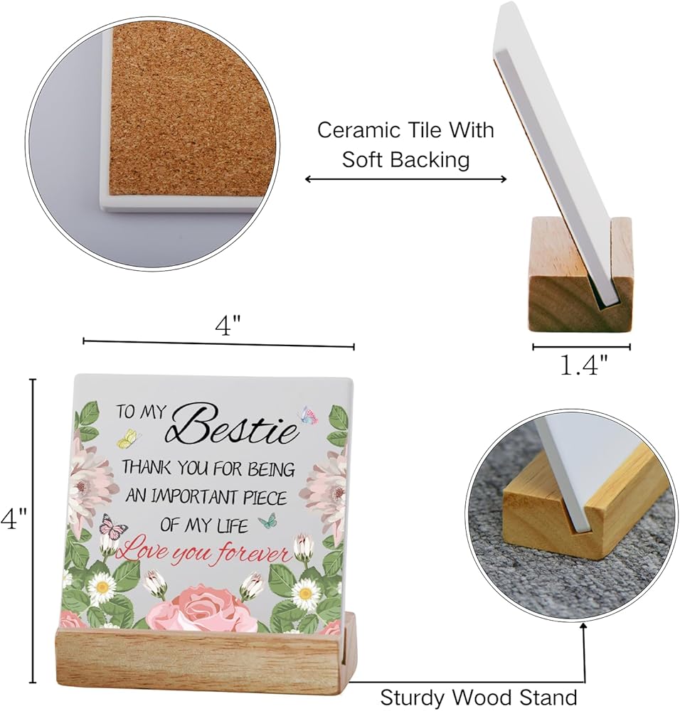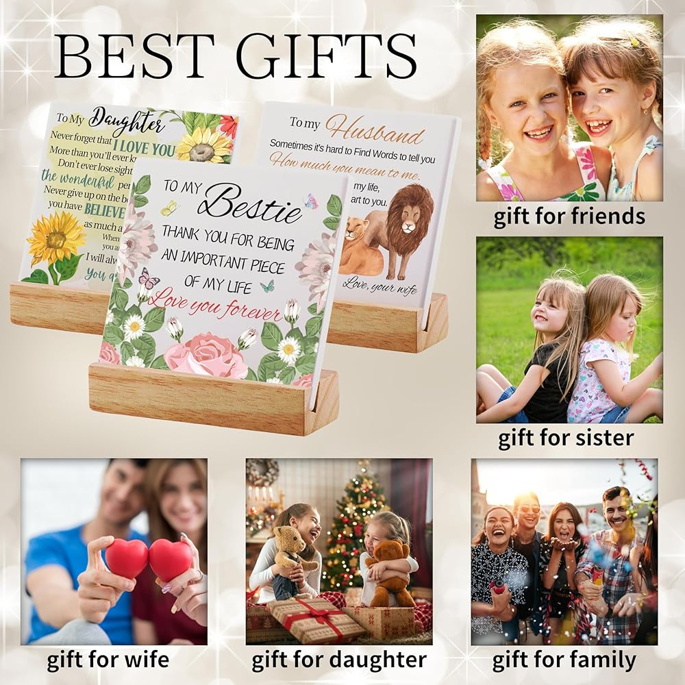 ★ 【Premium Craftsmanship】: The product consists of a 4''x4'' square ceramic plaque coupled with a L4''xW1.6'' wooden stand. The combination of quality ceramic and wood gives it a premium and durable feel.The wooden base can be effortlessly placed on various tables or counter tops, making it perfect for placing on bedrooms, tables, and office desks.