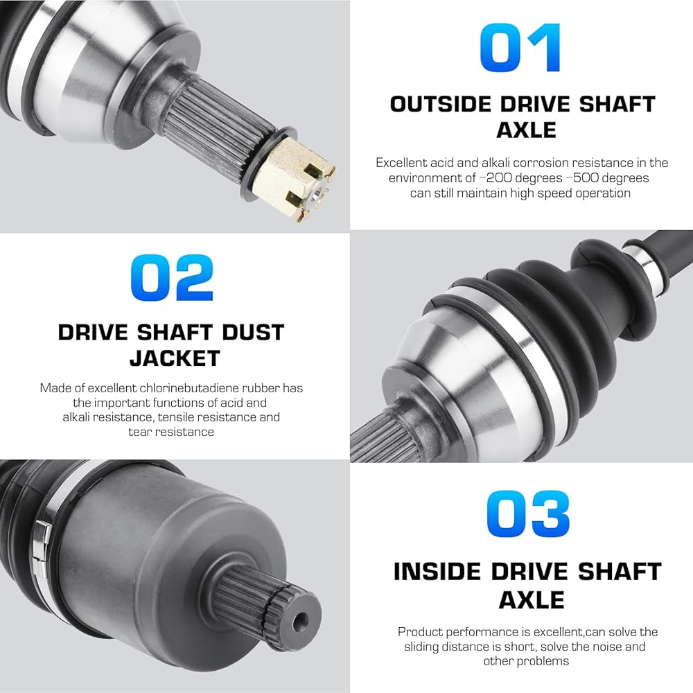 【Good function】Double lip seals made to keep grease in and dirt out. Greased with a moly based grease to provide superior joint lubrication. High speed bearings manufactured for long life. We're confident that our products will work flawlessly once installed in your vehicle.