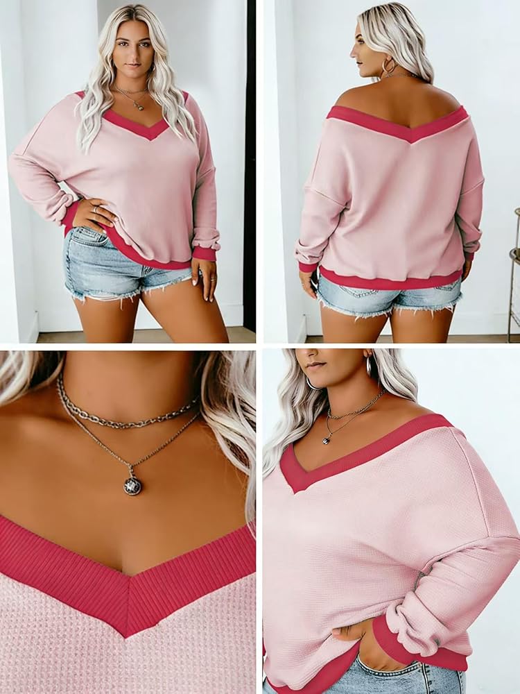 【Versatile Color-block Sweater】: The plus size long sleeve sweaters perfect to pair with jeans, pants, leggings, shorts, skirts, and your boots, or sneakers for a cool and stylish look, also can wear it under coats during cold winter. You will not go wrong with this plus size pullover sweater.