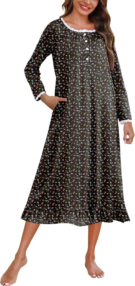 Soft& Comfy Sleep Dress: Women's long sleeve nightgown is made of 65% cotton, 30% polyester, 5% spandex, making it lightweight, breathable, and comfortable. The fabric is soft to the touch and allows for comfortable and unrestricted movement. It's the perfect nightdress to wear during summer nights.