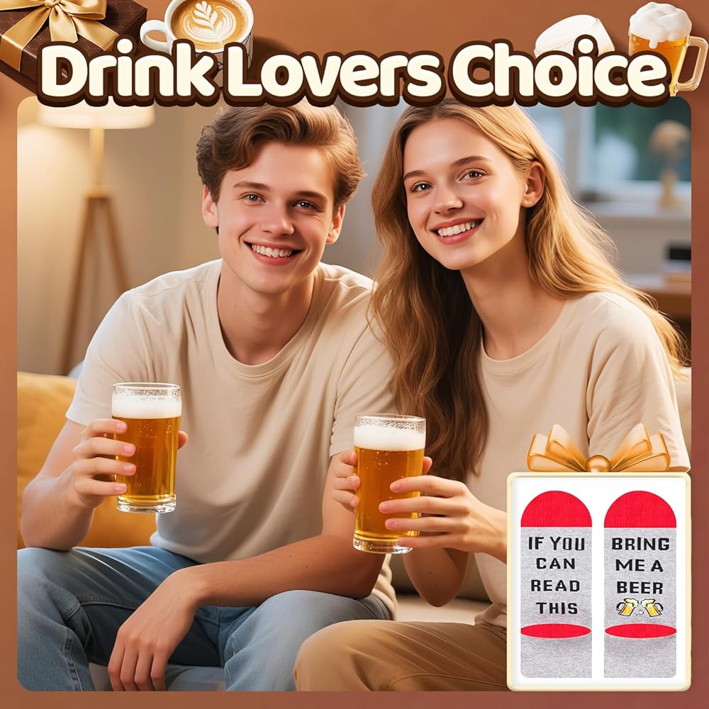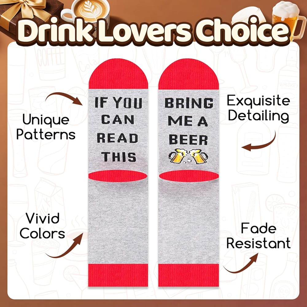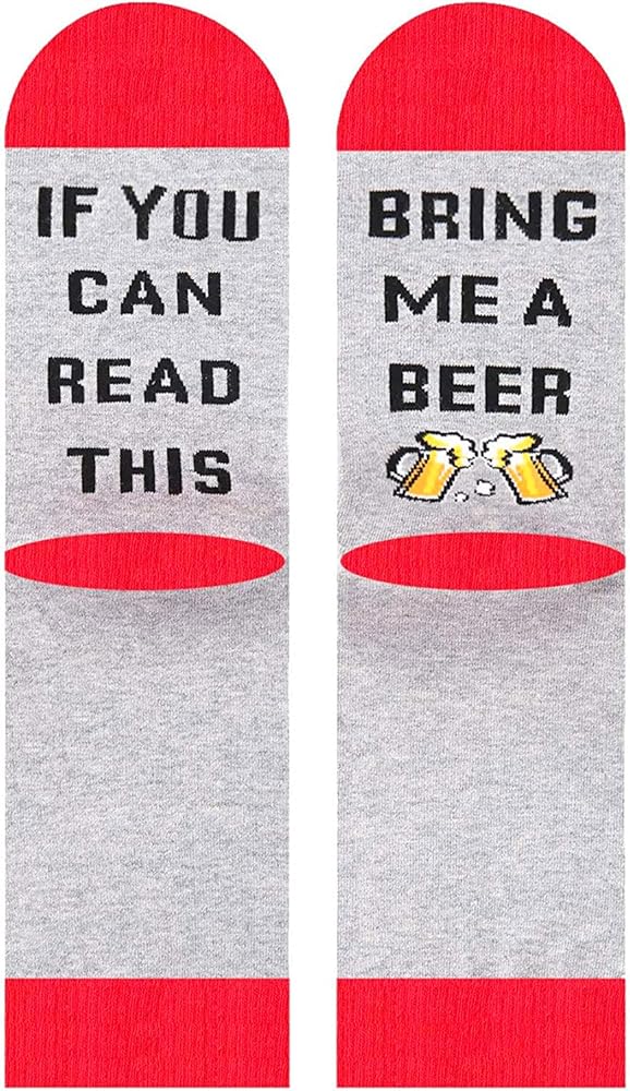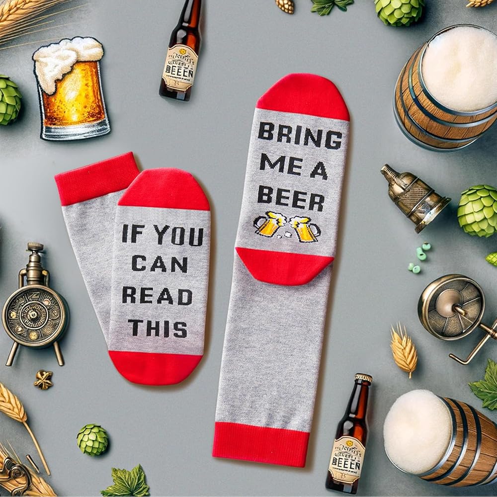 BEER GIFTS - These funny socks are perfect for men who love beer. They feature a hidden message on the bottom that reads "IF YOU CAN READ THIS, BRING ME A BEER". Add some fun to your sock collection and get your pair today!