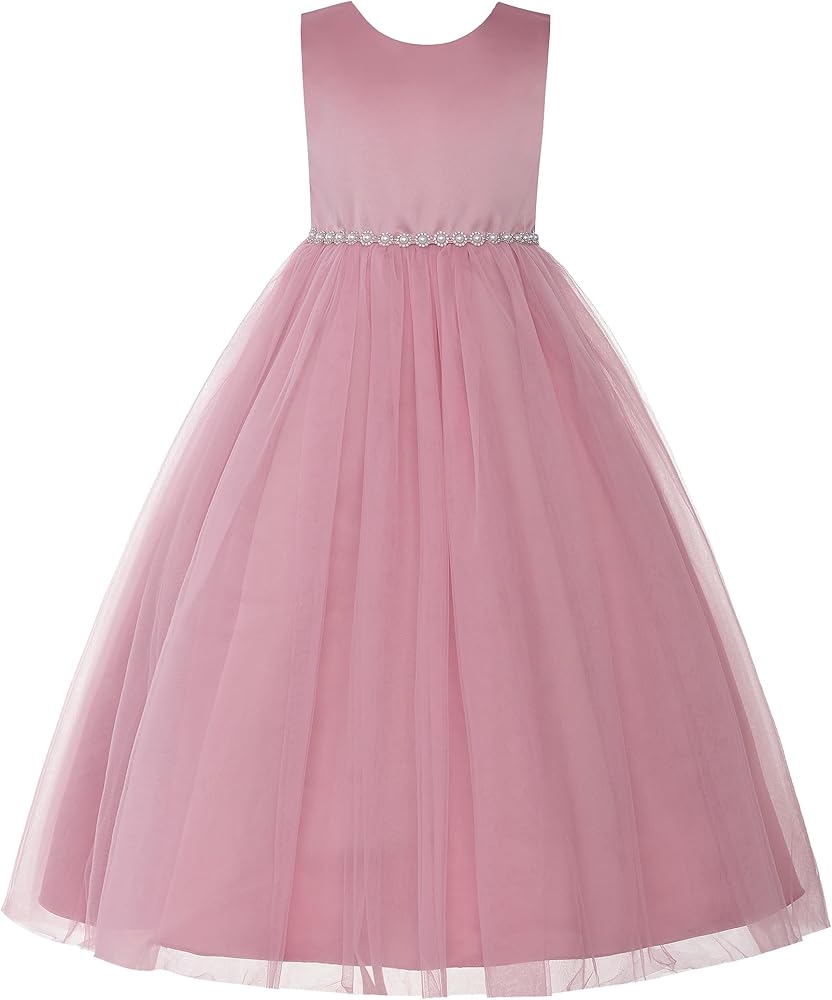JerrisApparel Flower Girl Dress Heart Cutout Back Sleeveless Tulle Gown Beaded Waist Wedding Party Dress