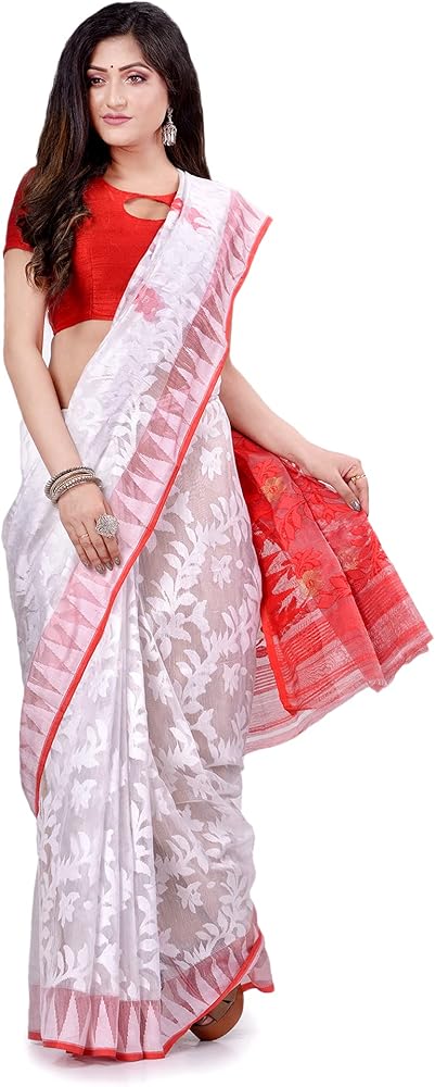 Explore the collection of beautifully Bengal Traditional Tant/Tangail Handloom Hand Made Cotton soft dhakai Jamdani Saree of West Bengal designed sarees from Desh Bidesh on Amazon. Each piece is elegantly crafted and will surely add to your wardrobe. Pair this piece with heels or flats for a graceful look. You can wear this saree in all occasions specially Puja, Party and any occasion in your family or friends. The decorative material is Cotton Threads. The color may vary due to screen setting . Fabric: Cotton; Length: 5.50 meter Set Content: Without Blouse Piece Care Instructions: Dry Clean Only Wash Care : Dry Wash Only, Don't Bleach