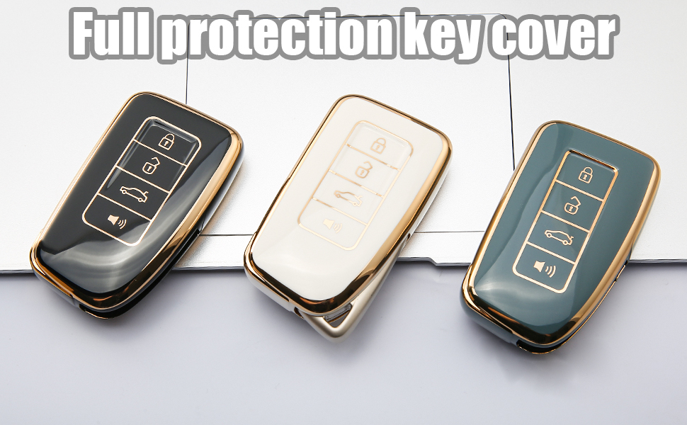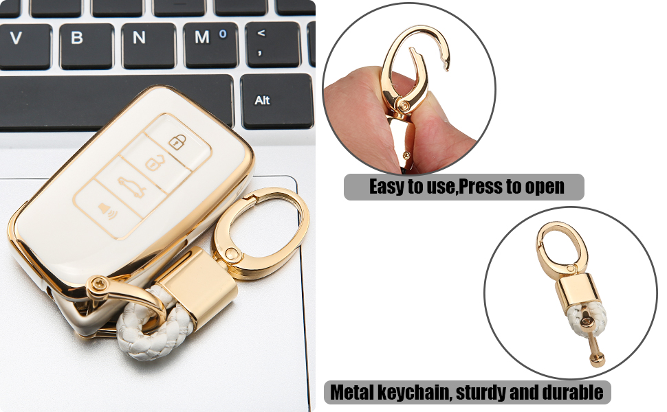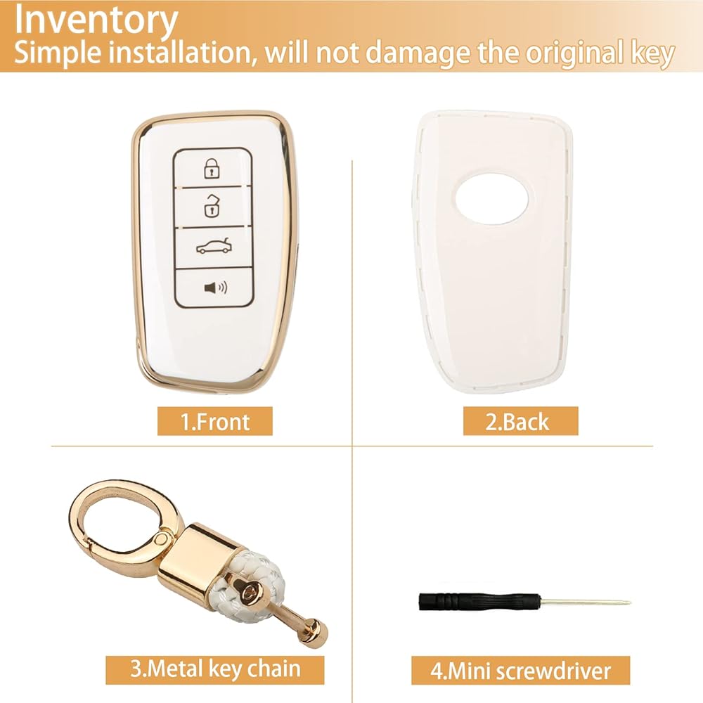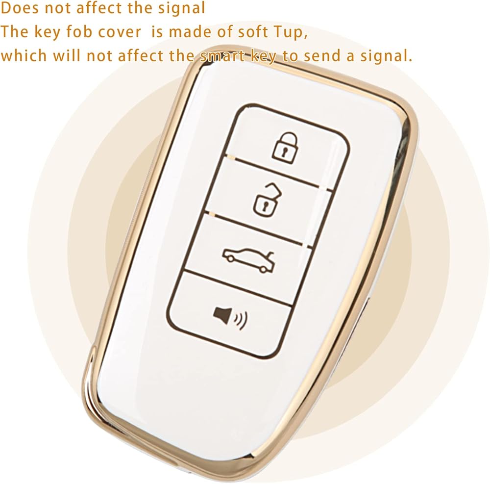 UTFT-17 For LEXUS Key fob Cover,Soft TPU Full Protection Cover,gold Keychains,for LEXUS RX Is ES GS LS NX RS GX LX RC LC Smart Key White